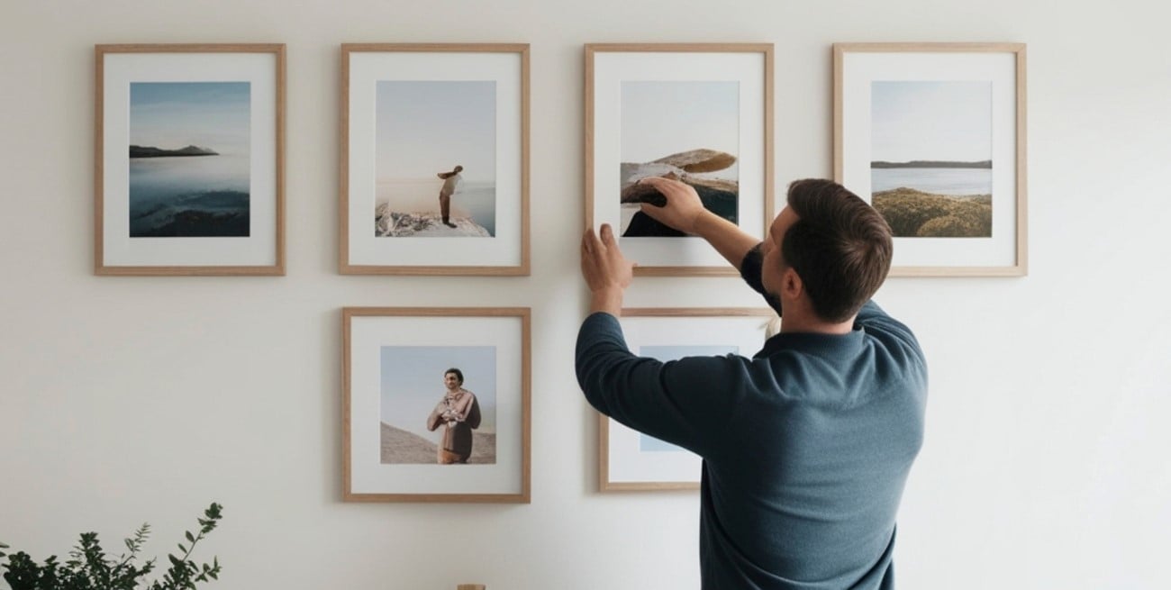 Combinar diferentes tamaños y formas de marcos para equilibrar la energía visual y emocional del ambiente.