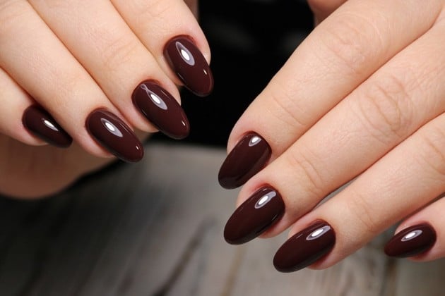 Uñas cortas en borgoña intenso, elegantes y versátiles.