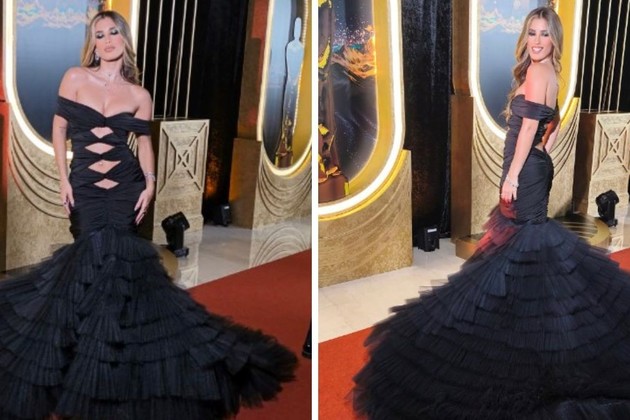 Zaira Nara se destacó en su presencia por dos atuendos diseñados por María Gorof. En primera instancia se declinó por un vestido de la colección Crystal Chan Dress en tono silver, realizado en tul fránces con bordados y galones de cristal en diseño geométrico.