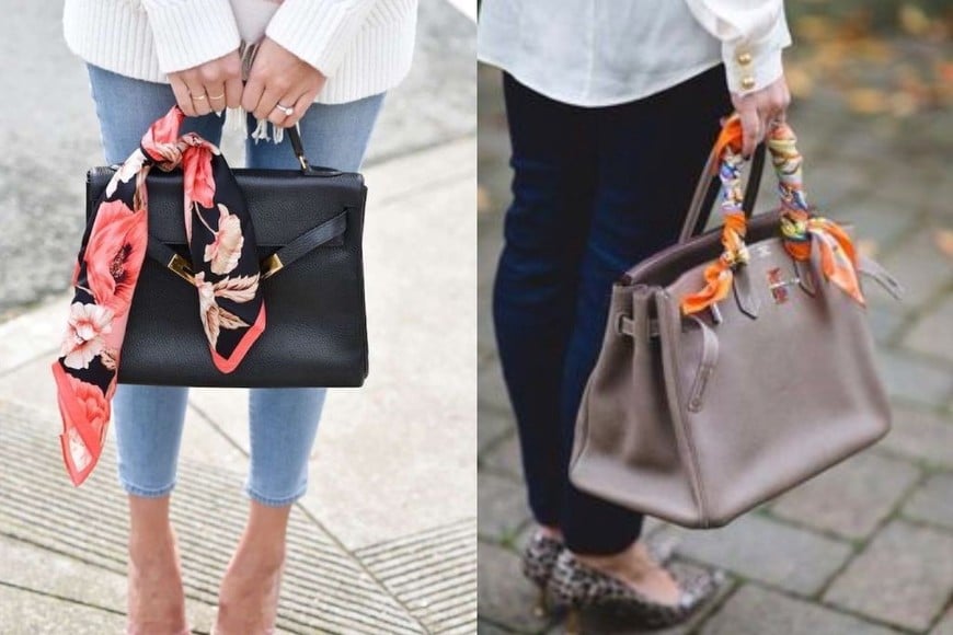 Atar un pañuelo a tu bolso es una forma de añadir color y personalidad.