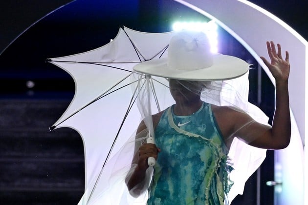 La tenista japonesa apareció en la cancha con un sombrero de ala ancha, velo y una sombrilla blanca, un conjunto que generó impacto inmediato. Cada elemento tuvo un sentido particular: la mariposa que decoraba el sombrero y el paraguas remitían directamente a su consagración en el Abierto de Australia 2021, uno de los momentos más emblemáticos de su carrera.