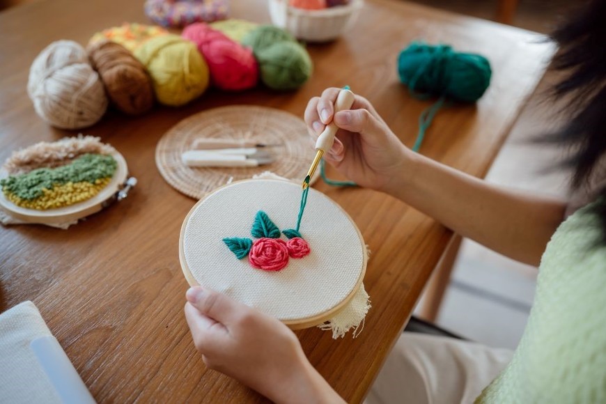 Mantén la tela tensa: usa un bastidor para asegurar que la tela permanezca estirada durante el trabajo.