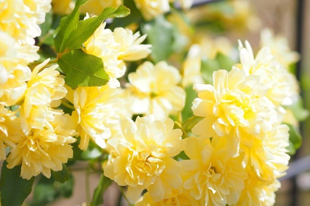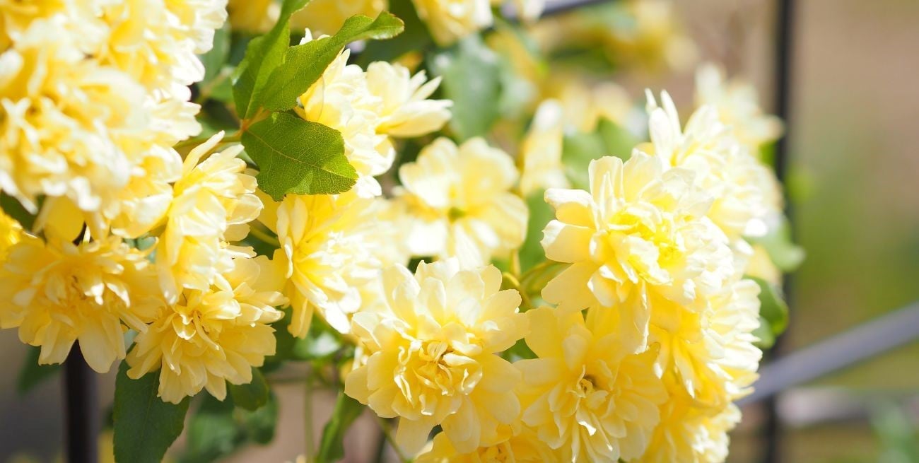 Las flores de la rosa banksiae son delicadas y se presentan en tonos amarillos y blancos, brotando en racimos que crean un espectáculo visual impresionante. Además, estas flores emiten un suave perfume a violetas, llenando el ambiente con una fragancia encantadora, especialmente en primavera.