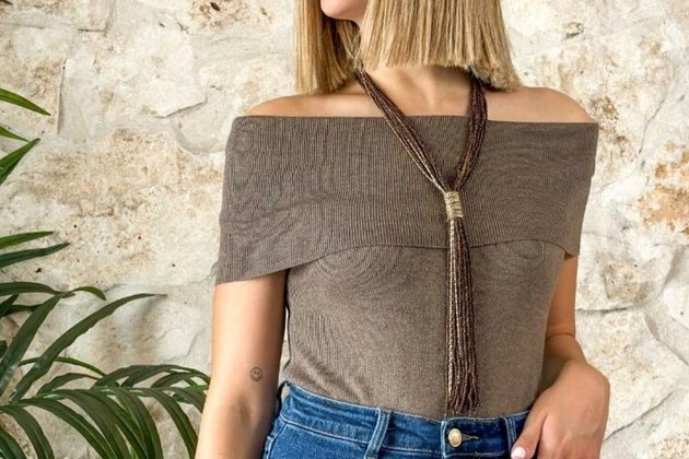 Combina y disfruta: ahora que has transformado tu musculosa en un escote Bardot, ¡es hora de combinarla! Puedes usarla con jeans de cintura alta, una falda midi o incluso un pantalón de lino para un look casual chic. Para la noche, un par de tacones y unos accesorios delicados pueden elevar aún más el estilo.
