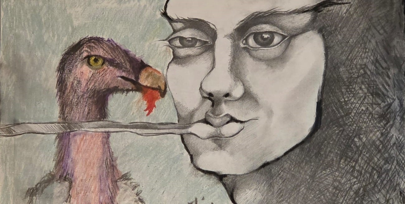 Desde otro plano, observa como los buitres descuartizan su cadáver. Ahora sabe que hay una consciencia común entre los pájaros.