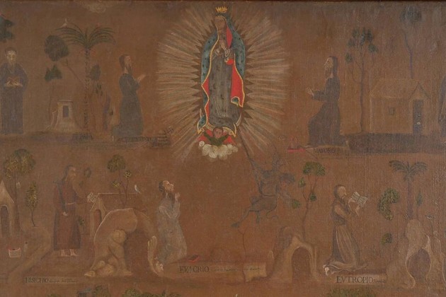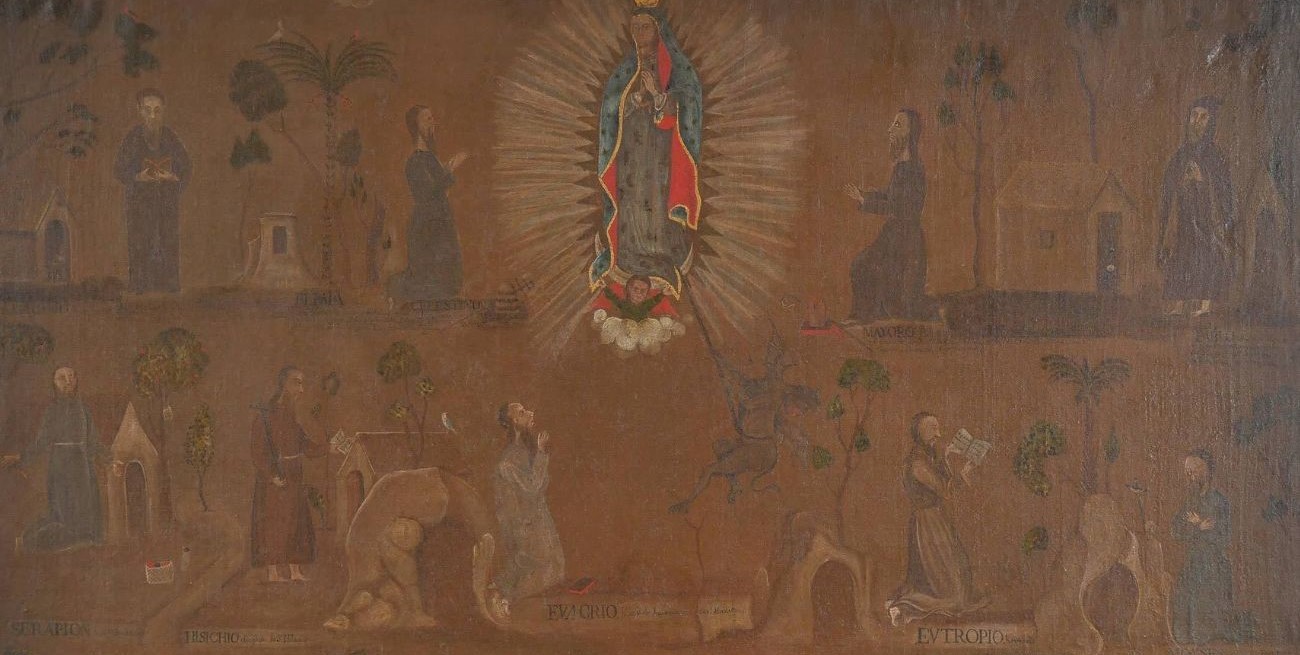 Vista parcial del cuadro de la Virgen de Guadalupe y los anacoretas, pintado por Francisco Javier de la Rosa hacia 1775. José G. Vittori/Museo Histórico Provincial