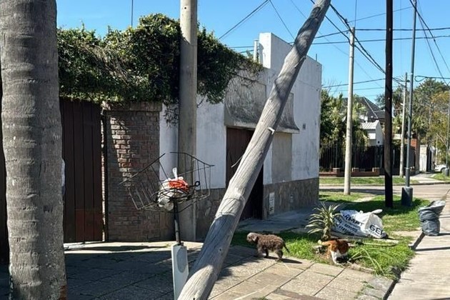 "Hace 18 días, un Clio colisionó con un poste de madera en calle Pavón 620. Fue informada la Municipalidad, que asistió con el Cobem tomando debida nota. Pero, desde esa fecha el poste pende de un cable. ¿¿Estarán esperando que caiga sobre la cabeza de algún ciudadano??".