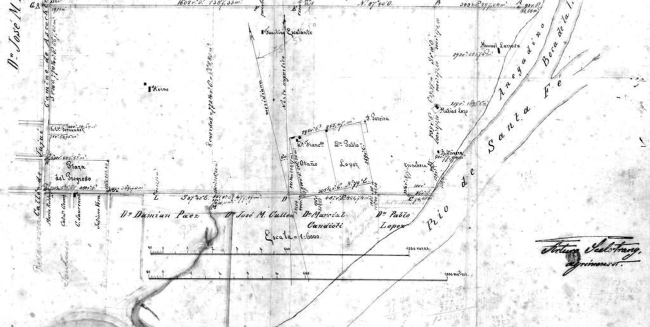 Como todos saben, barrio Candioti está dividido en Sur (Sud, palabra que conserva la grafía francesa) y Norte. Y deriva su nombre de la figura pionera de Pablo Marcial Candioti, quien en 1867 le compró a doña Manuela Puig, viuda del brigadier general Pascual Echagüe -exgobernador de las provincias de Santa Fe y Entre Ríos- las tierras de la sección Sur que en origen habían pertenecido a la Chacarita o Chacarilla de los Jesuitas. Cuando digo "en origen", me remonto a los trabajos de demarcación de los lotes urbanos y los terrenos para chacras que habrían de ocupar los santafesinos que abandonaban Santa Fe la Vieja (sitio arqueológico vecino a la localidad de Cayastá) para radicarse en Santa Fe de la Vera Cruz, la nueva ciudad que tomaba forma en el rincón de Lencinas (entre las cuencas del Paraná y el Salado), y próxima a la laguna de los Quiloazas (actual Setúbal o Guadalupe).