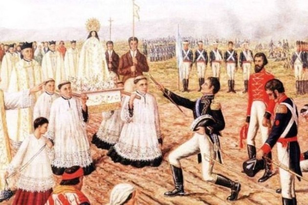 Antes de la Batalla de Tucumán, el general Manuel Belgrano puso bajo la protección de la Virgen de la Merced a todas las tropas patriotas. Luego del importante triunfo sobre los realistas le agradeció el mismo, ofreciéndole su bastón de mando y nombrándola "Generala y Patrona del Ejército". Gentileza