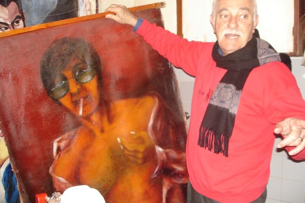 El tema es que la propiedad no está "deshabitada": las obras de Sahda, su espíritu inquieto, su búsqueda estética, su vehemencia personal y su huella creadora deambulan por todos los ambientes. Marlene nos muestra cada espacio de su casa paterna con una emoción que le hace temblar la voz aunque quiera disimular con una sonrisa. Es una casa que respira arte. La trayectoria del artista habita el lugar: pinturas de su primer período creativo guían el recorrido en las escaleras; tres bustos grotescos con mueca bufonesca nos miran como intrusos en la planta alta; dos obesas prostitutas yacentes ofrecen servicios en el dormitorio norte; en una biblioteca, dos cuerpos de yeso recrean una posición del Kamasutra sin ponerse colorados por nuestra presencia; en el jardín brotan ogros, gatos gordos, criaturas inciertas atravesadas por hierros y bocetos desamparados que piden a gritos que Dios les sople su aliento de vida para echarse a andar.