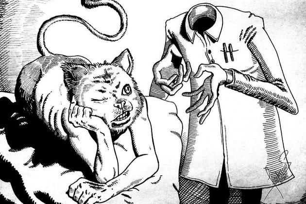 El médico de cabecera es el jinete sin cabeza. No habla: ¡No tiene con qué! Con gestos temblorosos me hace pasar al consultorio. Me recuesta sobre la camilla. Apoya el estetoscopio sobre mi corazón pero no oye mis latidos: ¿No tiene con qué o no hay palpitaciones? Toma el recetario y garabatea: "Usted tenía 7 vidas como los gatos. La primera expiró cuando el divorcio de sus padres mató su niñez. La segunda se extinguió cuando se cansó de esperar en una esquina a la chica que jamás llegó. La tercera, cuando abortó su sueño de ser músico. La cuarta, cuando aceptó ese trabajo esclavizante. La quinta, cuando se casó por inercia de zona de confort. La sexta feneció cuando rechazó mudarse de país para buscar nuevos horizontes. La séptima comenzó a cesar cuando se acostó a dormir esa siesta que lo trajo a este consultorio. Le diagnostico una muerte saludable. Ahora sí, descanse en paz."