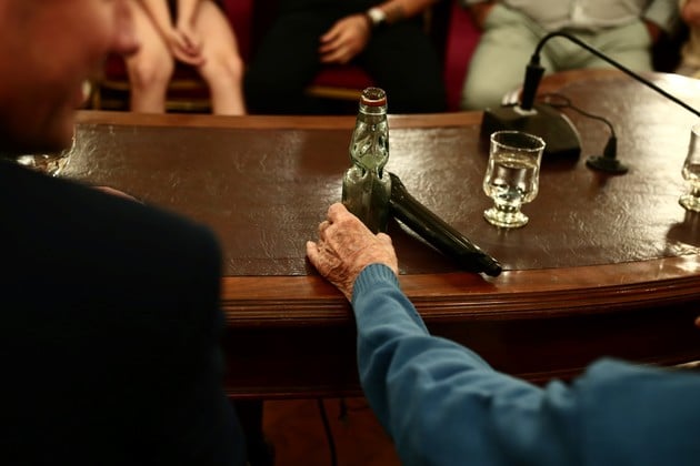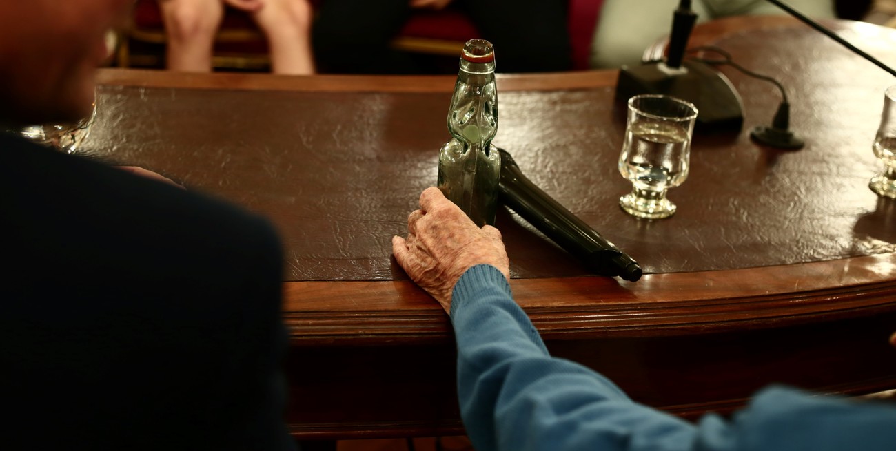 Hoy tiene 95 años y conserva una lucidez envidiable. Ante una broma del intendente de San Jorge, Juan Pablo Pellegrino, que le dijo que como ciudadano ilustre tiene que dar el ejemplo y portarse bien, confirmó que no ha vuelto a manejar su camioneta. Pero lo mejor vino cuando para hablar mostró primero una vieja botella de una bebida de otras décadas. Se la alcanzó el senador Estaban Motta, quien acertó a ofrecerle el homenaje: seguramente, el joven representante del departamento San Martín sabía lo que iba a suceder.
