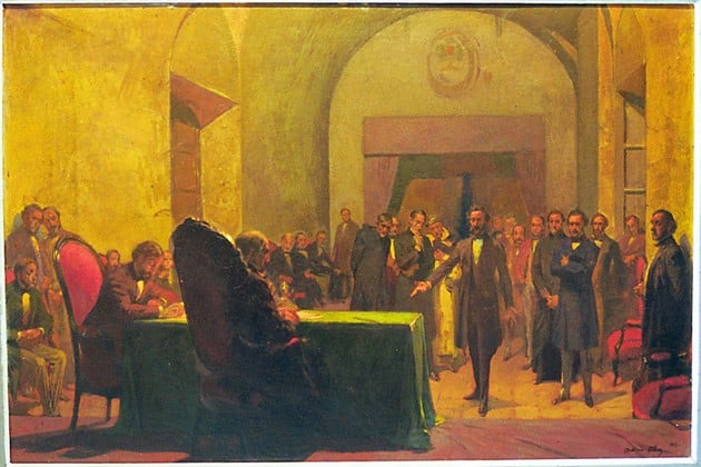 Cuadro "Los Constituyentes del 53", realizado en 1934 por el pintor Antonio Alice (1886-1943). Óleo sobre tela, de 3.60 x 3.42 metros. Ubicado en el Salón de los Pasos Perdidos del Congreso Nacional.