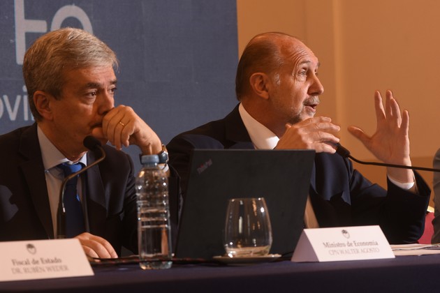 El gobernador Omar Perotti y el ministro Walter Agosto dieron detalles del acuerdo. Crédito: Mauricio GarínEl gobernador Omar Perotti y el ministro Walter Agosto dieron detalles del acuerdo. Crédito: Mauricio Garín