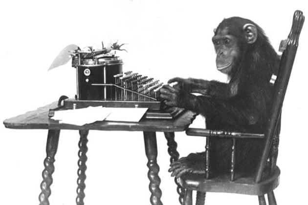 "Si pusiéramos a infinitos monos a aporrear infinitas máquinas de escribir, tarde o temprano escribirían todos los libros de la Biblioteca Nacional".