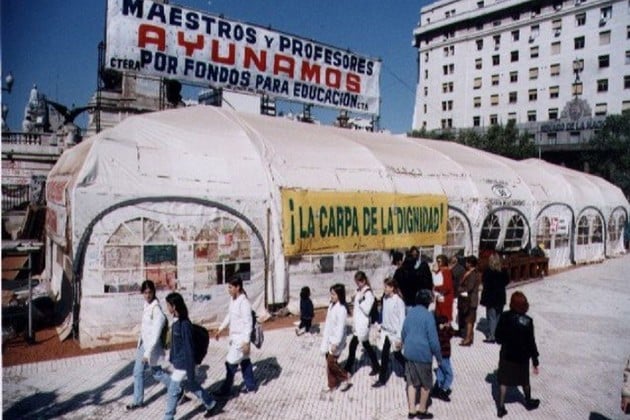 En 1973, como mencionamos, los docentes públicos de los niveles inicial, primario, secundario y terciario se nuclearon en la Confederación de Trabajadores de la Educación de la República Argentina (Ctera), que participa en la actualidad de la Central de Trabajadores Argentinos (CTA). Como símbolo de resistencia de maestros, maestras y docentes de todo el país, contra las políticas liberales de ajuste del gobierno nacional a cargo de Carlos Saúl Menem, el 2 de abril de 1997 la Ctera establece en la ciudad de Buenos Aires la denominada Carpa Blanca.