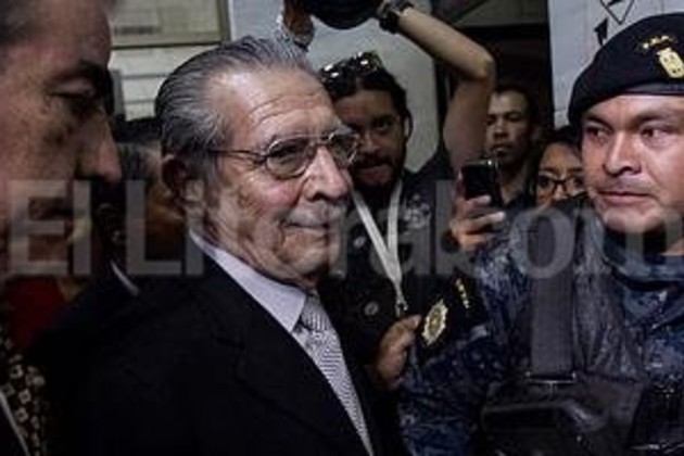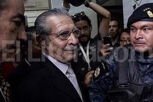 En tribunales. Ríos Montt abandona días atrás el edificio donde se sustanció el juicio que terminó con su condena. Foto: EFE