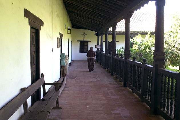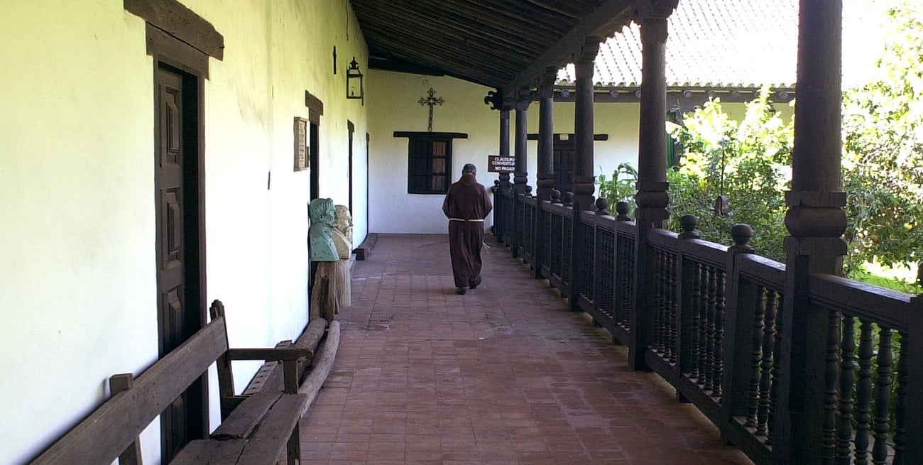 Al salir del museo visitamos la Iglesia, verdadero modelo de la construcción en la época de los colonizadores, la riqueza arquitectónica y cultural del lugar es abrumadora. Por una puerta lateral, salimos al patio interno, está rodeado por corredores y celdas, las columnas de madera que sostienen el techo de tejas se ven resecas, la variedad de plantas y árboles aportan calidez al lugar.