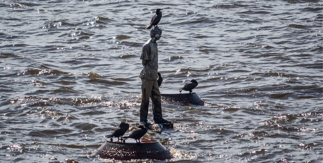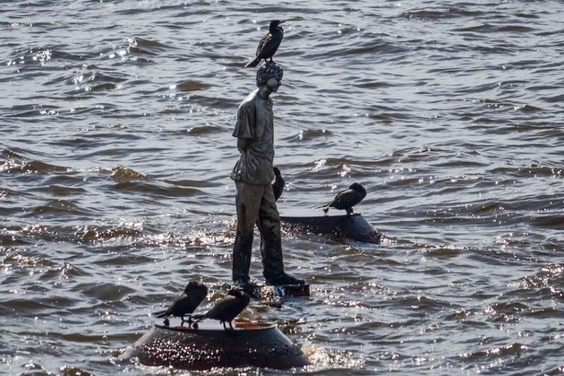 Otro detalle interesante de la obra es que solo pueden verla de frente aquellos que navegan por el río, el resto, los visitantes del Parque de la Memoria, tienen una visual recortada de un joven que está de espaldas, con su brazo derecho por detrás sujetándose el codo izquierdo, en una pose contemplativa.