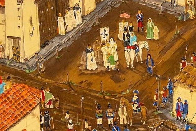 Cuadro titulado "Llegó el General Belgrano a Santo Domingo", del artista plástico santafesino Marcelo Alarcón. Pintura en acrílico de 80 por 70 centímetros, sobre madera. Premio Unión y Benevolenza "Dante Alighieri", año 2021. Gentileza