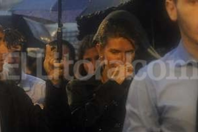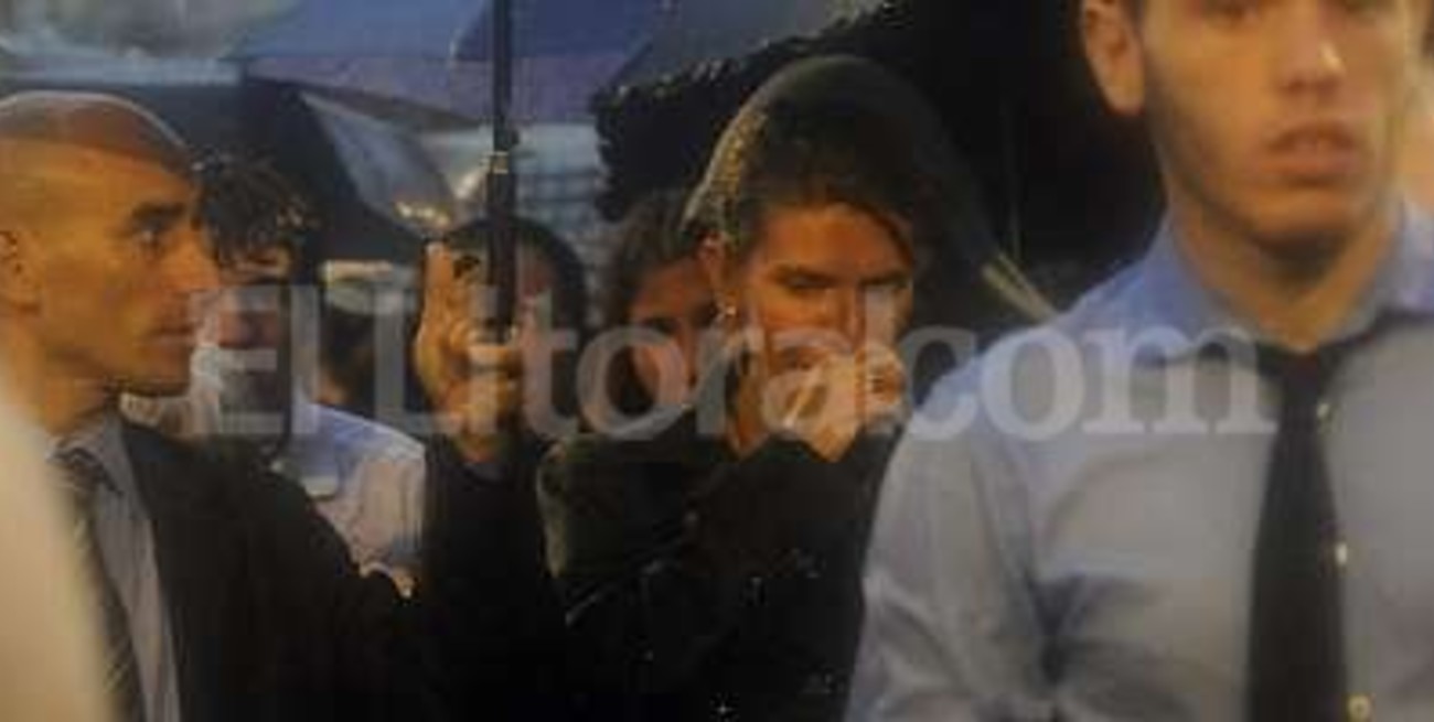 Lluvia y lágrimas. Bajo la vulnerable protección de los paraguas, la ex esposa y la hija de Nisman se emocionan con el homenaje de la multitud a la figura del desaparecido fiscal.foto:efe