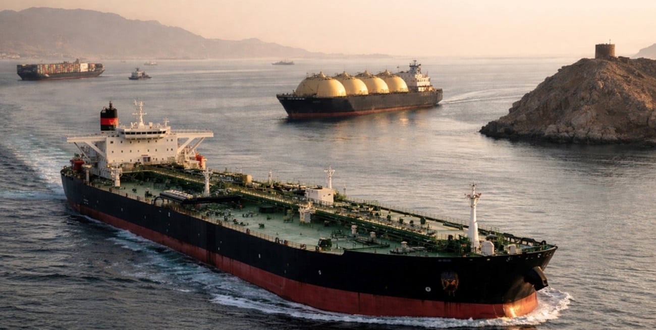 La importancia de Ormuz es monumental. Este estrecho de apenas 33 kilómetros de ancho, entre Irán y Omán, conecta el Golfo Pérsico con el Mar Arábigo. Por sus aguas transita aproximadamente una cuarta parte del comercio marítimo de crudo, además de una cantidad significativa de gas natural licuado.