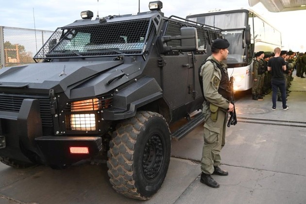 Bullrich saludando a las Fuerzas Federales en Rosario.