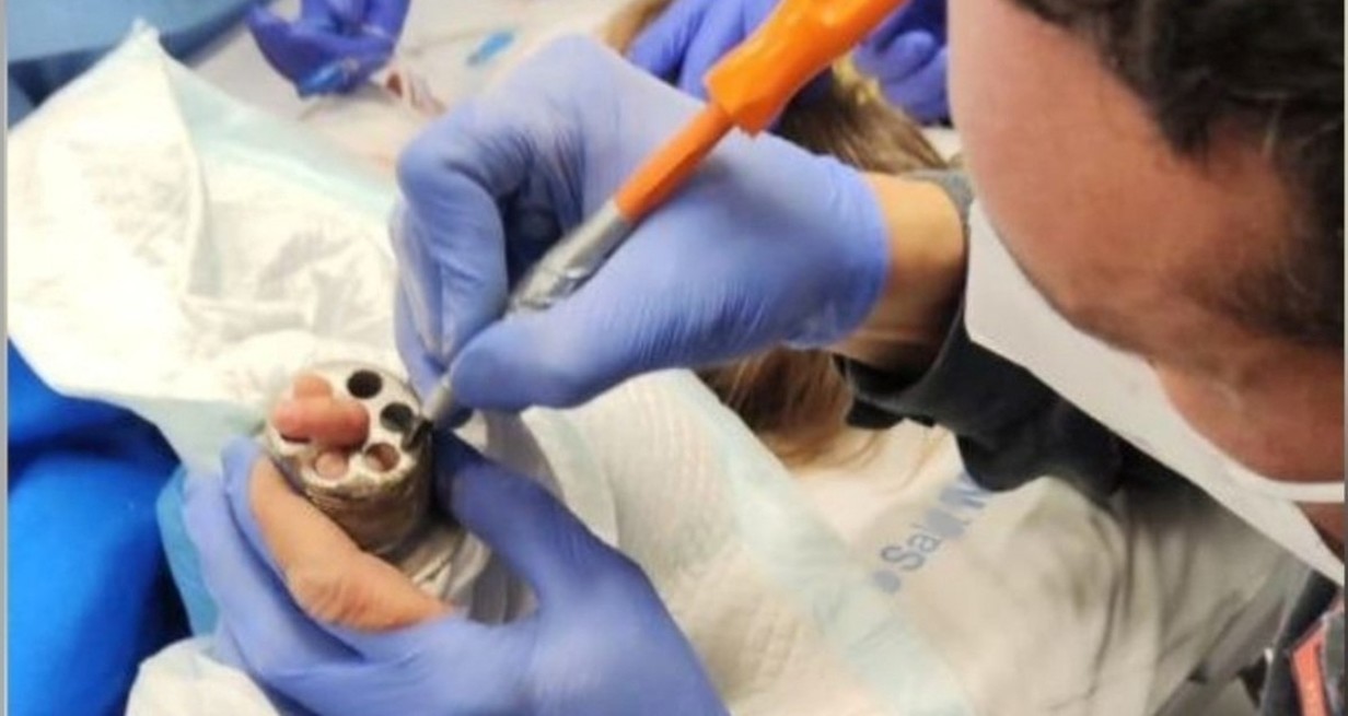 Los minutos pasaban con lenta desesperación, el cuadro se ponía cada vez más tenso según las esperanzas se desvanecían. Pero poco a poco entre todos lo consiguieron, cada uno aportando lo suyo, unos herramientas y otros habilidades y experiencia. Un trabajo de equipo. Ninguna materia de la facultad enseña qué hacer en estos casos: es el sentido común lo que aquí impera. Le liberaron al fin el dedo al pequeño.