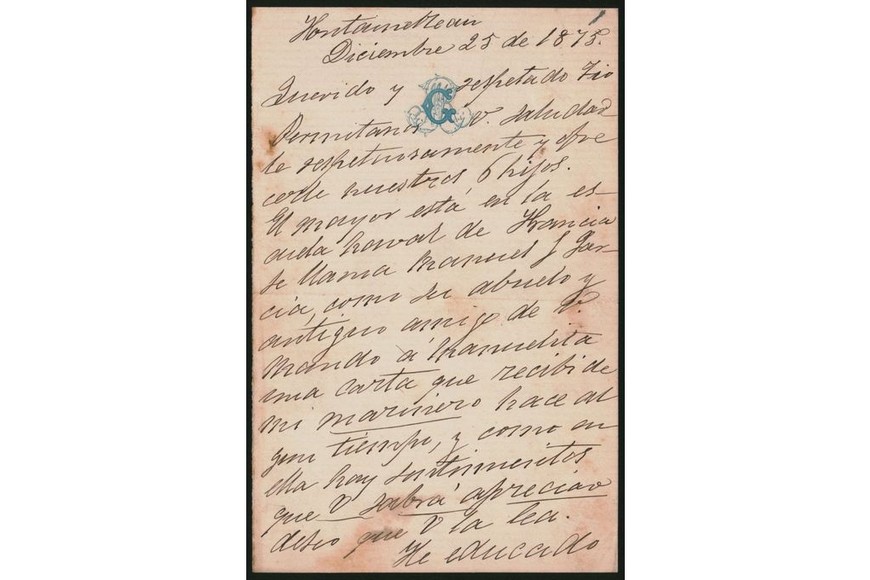 Primera cuartilla de la carta de Eduarda a su tío Juan Manuel de Rosas.