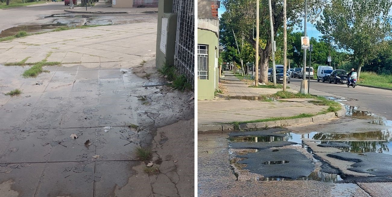 "Lo que muestran las imágenes es algo que los vecinos venimos reclamando desde hace tiempo, sin tener eco alguno. Desde hace más de un mes, hay un caño roto en la vereda de una casa situada en la esquina de calles Alejandro Greca y Jiménez Assua, por donde fluye gran cantidad de agua.