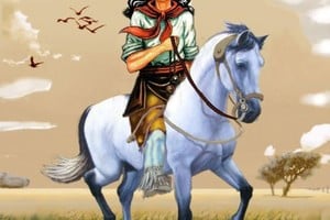 Un jinete, apenas iluminado por la luna, se le acercó saliendo de entre los matorrales. Él distinguió la vincha roja y entrevió sus ojos oscuros. Cuando estuvo a su lado, el jinete le tendió la mano, lo tomó con fuerza y lo alzó sobre el anca del caballo. "Vamos", le dijo. Después enfiló hacia el arroyo. En un corto galope, ambos se perdieron en la oscuridad.