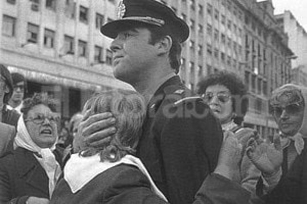 Gallone intentó defenderse recordando a los presentes que él fue el policía cuya foto de octubre de 1982 abrazando a una madre de Plaza de Mayo circuló por el país y el mundo. Su alegato no convenció a nadie; es más, indignó a todos. No era para menos: a nadie le gusta ver a un asesino abrazando a una madre.