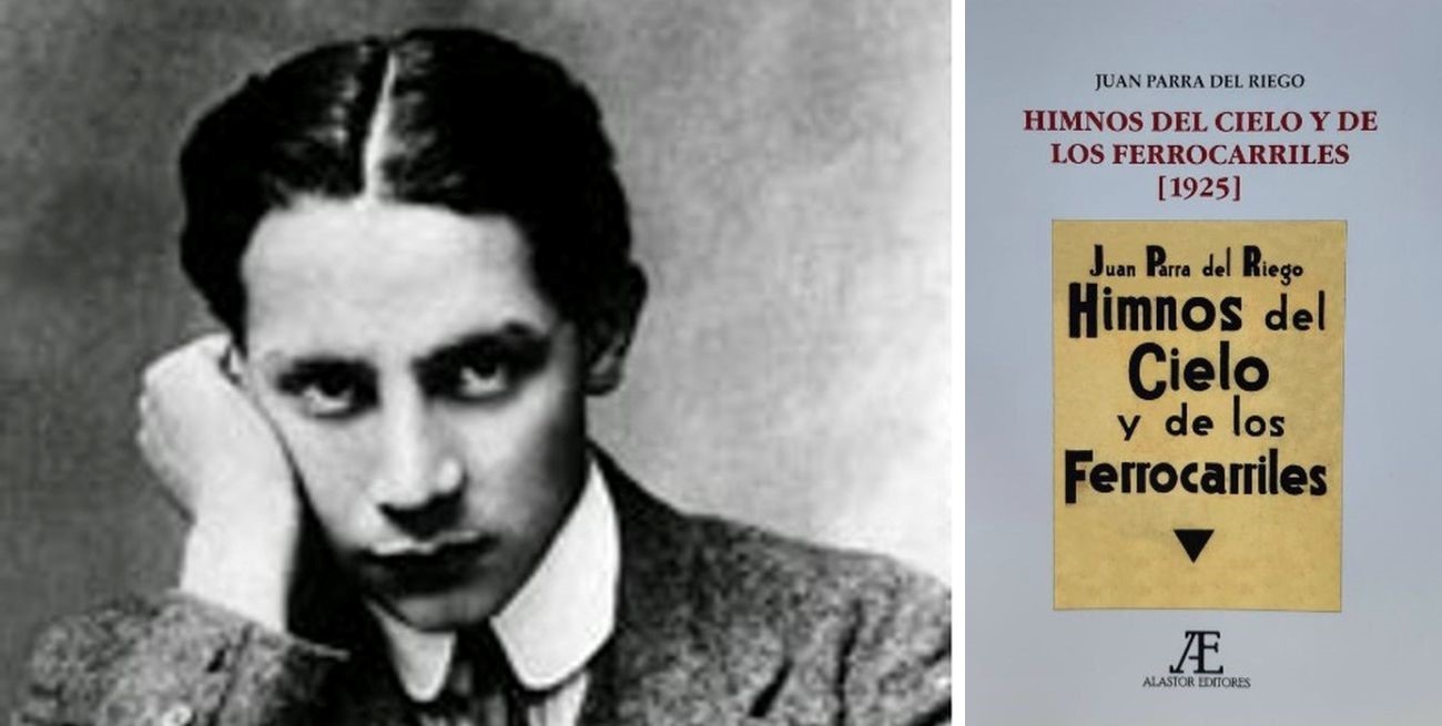 Juan Parra del Riego (Huancayo, 1894–Montevideo, 1925) publicó "Himnos del cielo y de los ferrocarriles" en 1925, poco antes de su muerte por tuberculosis, a los 30 años. Esta obra, redescubierta con creciente interés crítico, constituye una singular fusión de modernismo tardío y vanguardia futurista: un canto exaltado al movimiento, la velocidad, la tecnología y el espíritu humano. El poemario destaca por su tono oratorio y rítmico, casi ceremonial, en el que trenes, aviones y multitudes devienen símbolos de una energía vital y colectiva. Su lenguaje, exuberante y musical, se sitúa en las antípodas de la contención lírica, apostando por una poética del exceso y la exaltación.
