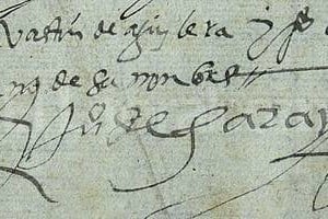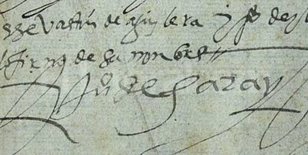 Firma de Juan de Garay en un documento de 1583.