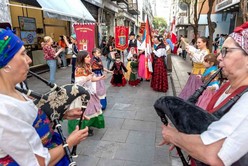 Significativa presencia de la mujer en una representación artística de la llegada de familias de inmigrantes a la Argentina. Fiesta Nacional del Inmigrante de Oberá, Misiones, año 2006.