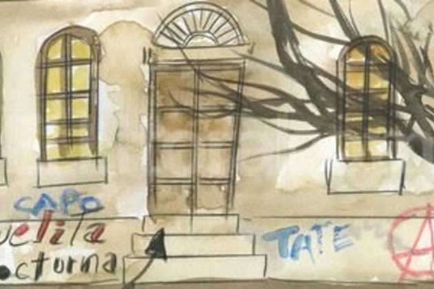 Hace frío, los autos encaran la procesión nuestra de cada día rumbo a casa y ellos van llegando lento, como quien no quiere la cosa. Los grandes muros, el patio con su mástil solitario; el viento bailando su gélida danza en la galería.