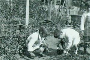 Chicos en la huerta del jardín de infantes de la señorita Olga. Foto: Red Cossettini