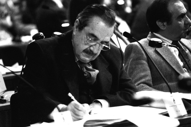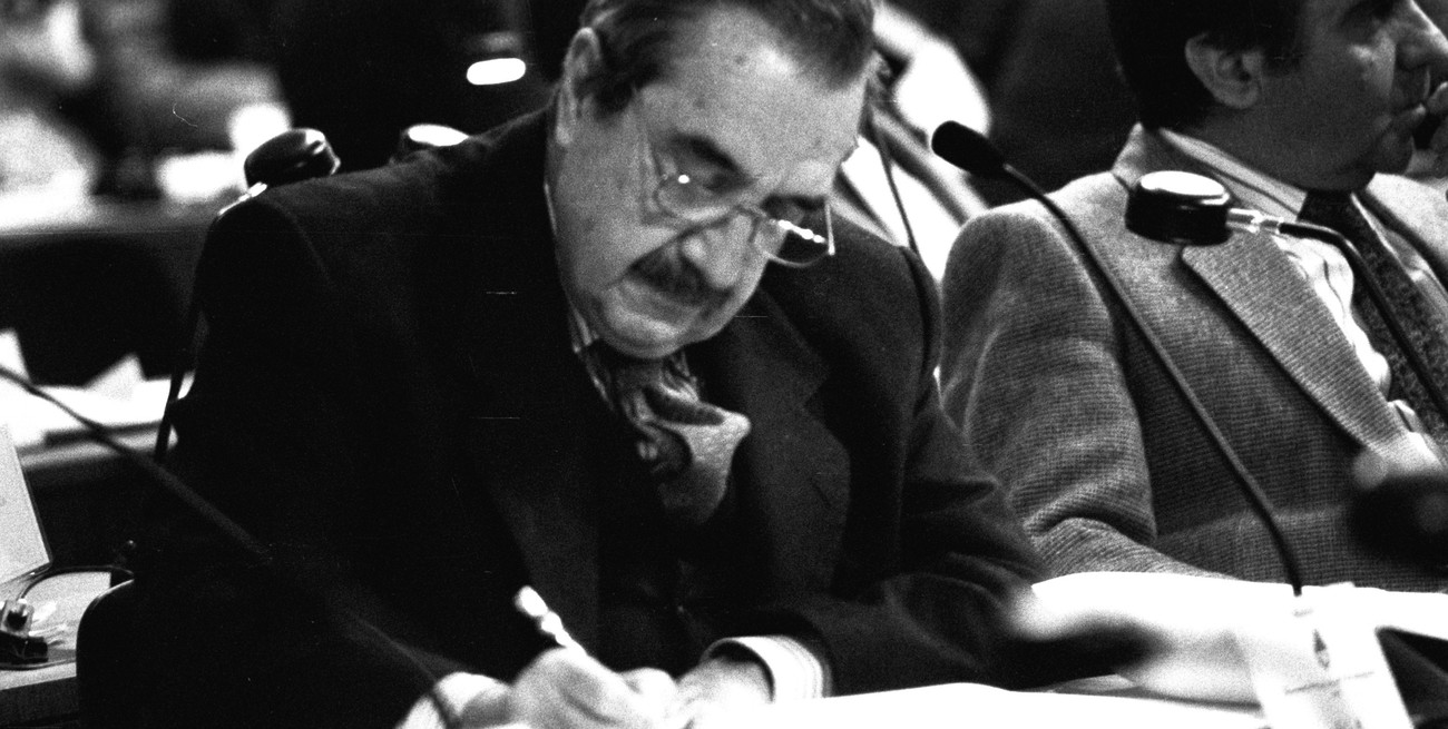 El ex presidente Raúl Ricardo Alfonsín en Santa Fe, durante su participación en la Convención Reformadora de la Constitución Nacional de 1994.