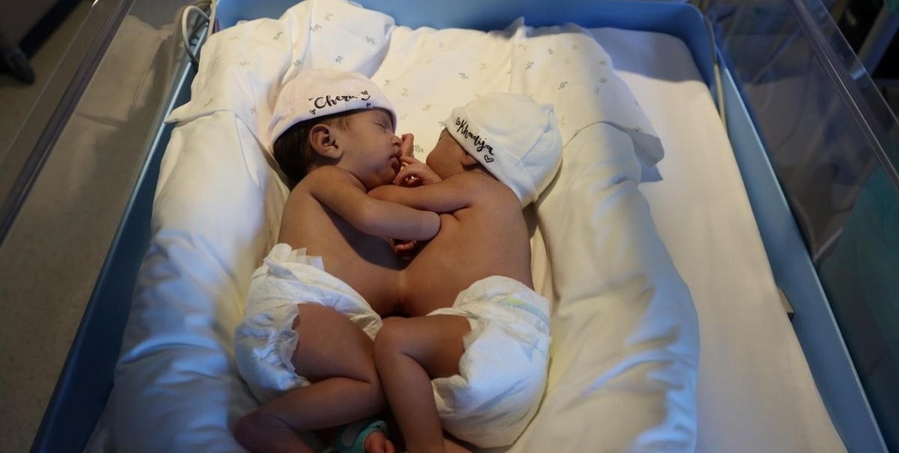 De nombre Khadija y Cherive, las dos nenas nacieron siamesas, pegadas, unidas por el abdomen. Tenían un único abdomen para las dos, pero por suerte los órganos abdominales duplicados. No obstante, interpreto que el intestino delgado era uno para las dos, o que en algún punto se unían con amplitud, el intestino de una con el intestino de la otra. Ambas tomaban bien la mamadera, algunas con leche de madre y otras con leche de bebé, y con avidez, y ganaban peso. Nacieron con un único cordón umbilical, el 8 de octubre.
