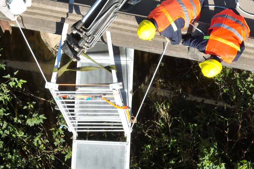 Colocación de ménsula en Carretero. Las condiciones de deterioro en la calzada del viaducto eclosionaron este año. Fernando Nicola / Archivo El Litoral