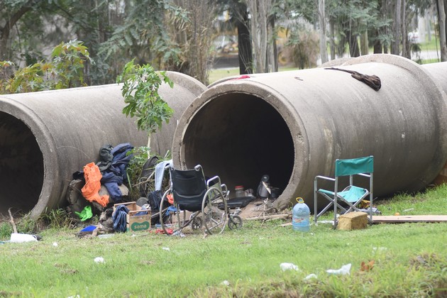 Perderse, arruinarse económicamente, morirse, ir a vivir a lugares inferiores. Esa es la definición que el diccionario lunfardo otorga a la expresión "irse a los caños". Como en este retrato urbano registrado por el reportero gráfico Flavio Raina, con su ojo que todo lo ve y dispara, para inmortalizar un momento tan doloroso que nos interpela como sociedad. ¿Quién es, acaso, la persona que habita este caño? ¿Cómo llegó hasta allí? Una historia de abandono y postergación social pueden ser las pistas para tratar de comprender lo que humanamente resulta incomprensible. Un nadie, un marginado social. Una silla de ruedas que espera en la puerta del caño de desagüe que hace las veces de hogar. Un techo frío, gris y redondeado para cobijar la esperanza de otro amanecer, de transitar un día más, de esperar vaya a saber qué. Las ropas desplegadas alrededor del caño, un bidón de agua, la pava para el mate, no mucho más. El habitante del caño sobrevive al margen de la ciudad. Ocupa este desagüe que transformó en su reparo junto a la calle Teniente Loza y Los Teros, en barrio San Agustín II, el extremo noroeste de la ciudad, allí a donde el brazo del Estado llega a cuentagotas, allí donde la gente se resigna a vivir como puede, de changas u oficios, a donde la violencia pelea su terreno en una lucha tensa y cotidiana con las estrategias de inclusión de un Estado al que no le sobran recursos. Y todo ello hace que algunos se vayan a los caños. El equipo periodístico de El Litoral estaba allí para contar otra historia. Pero ante esta fotografía que interpela e incomoda, no podía seguir de largo. Había que detenerse, estar, ver, sentir y contarlo.