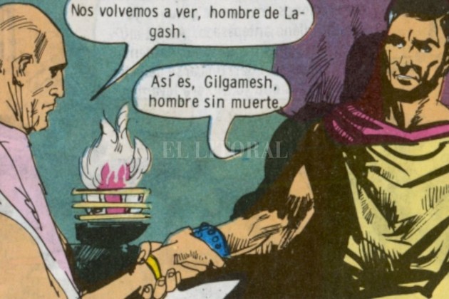 Otro de los personajes de Wood que me ganó el corazón y la mente fue: Gilgamesh, El Inmortal. En él, están las preguntas que la humanidad se ha hecho desde tiempos inmemoriales y que Queen expresó con su música: "¿Quién quiere vivir para siempre cuando el amor debe morir?" (Banda sonora de otra historia de inmortales: "Highlander''). Con Gilgamesh, conocí desde la antigua Mesopotamia hasta la desaparición del hombre sobre la faz de la tierra por efecto de una supuesta Guerra Nuclear (otra vez el clima de Guerra Fría colándose por la ventanita de las viñetas). Los dibujos de Lucho Olivera le daban al periplo de este héroe de Uruk un toque surrealista que me descolocaba. Gilgamesh era testigo de luchas, traiciones, odios, venganzas y amoríos: ¡Pero todas las ambiciones del hombre iban a parar al miserable polvo de la nada misma! De algún modo, este personaje de historieta se asemejaba -más tarde lo supe- a "El inmortal" del cuento creado por Borges: en este relato, los hombres sin muerte han perdido toda motivación para seguir vivos; se asemejan a trogloditas; se pasan el día despreocupados y tirados al sol; sin expiración a la vista, sus existencias han perdido sentido. En otros términos, los personajes de Wood y Borges desean despojarse de la inmortalidad; envidian la suerte de los mortales; para qué vivir sin pausa si los seres y cosas que amamos envejecen, se oxidan, se pudren, se corrompen irremediablemente para esfumarse en las arenas del tiempo. Incluso, estos seres de ficción parecen desnudar la falacia de la afirmación poética de Quevedo: ¿"Polvo serán, más polvo enamorado"? ¡Todas son vanas ilusiones!