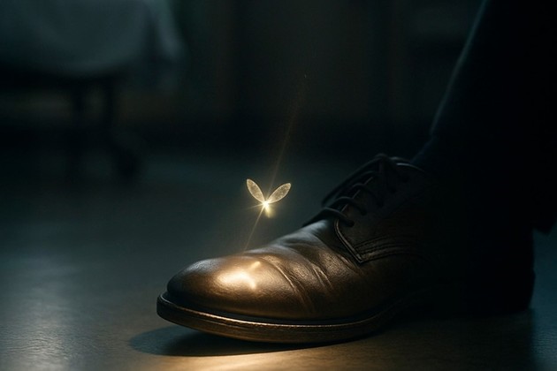 Miro mi zapato y siento cómo la luz se posa sobre la punta, leve, frágil, como una mariposa que insiste en quedarse. Sus alas de claridad tiemblan, retroceden, vuelven, como si quisieran retomar los rayos que dejaron atrás en el aire. Una ventana abierta, descuidada, permite que esa danza llegue hasta mí, que se instale sobre el cuero gastado, sobre la quietud de mi espera.