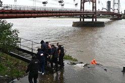 Rescate. Este miércoles por la mañana lograron llevar a tierra firme a un hombre que se había tirado del puente.
