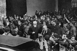 Otros aseguran que la que se impuso fue Carmen Polo, quien le dio el brazo a Unamuno y juntos salieron del Paraninfo. Los legionarios eran muy locos pero con la esposa de Franco no se iban a meter. Lo cierto es que Unamuno salió del salón del brazo de doña Carmen. A su lado se lo ve a Millán de Astray y a una multitud de jóvenes haciendo el saludo fascista.