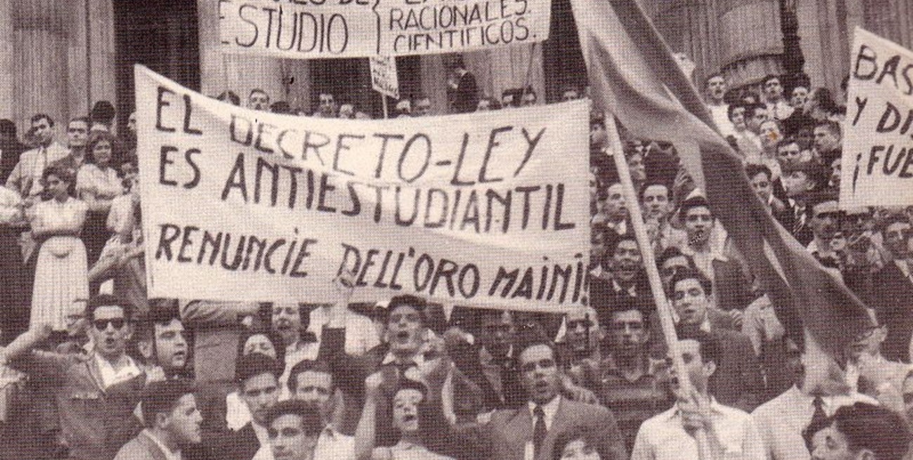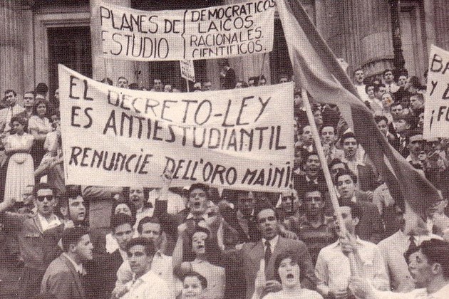La universidad pública siempre estuvo asediada. En 1956 por las hazañas de un perseverante militante clerical iniciado en estas lides en 1918, perfeccionado hasta en los detalles después del golpe de 1930, y redactor del decreto ley que autorizaba a las universidades privadas el otorgamiento de títulos universitarios. Atilio Valentín Dell'Oro Maini se llamaba. En aquellos años una agrupación de extrema derecha que respondía al nombre de Tacuara le declaró la guerra a la universidad reformista. Su consigna más célebre rezaba: "La FUBA, la FUBA; la FUBA donde está; está en la sinagoga leyendo El Capital". Típicos, previsibles y torpes. En 1966, el debate deja de circular entre las nubes de las ideologías y las teorías para expresarse de manera brutal en la noche de los bastones largos, ocasión en la que el ejército garroteó y encarceló a profesores y estudiantes provocando no solo uno de los antecedentes más brutales en materia represiva, sino el exilio de miles de profesores a países donde pensar, investigar y desarrollar la ciencia no fuera un delito. Un militar ignorante y reaccionario, apellidado Onganía, fue el héroe de esas parrandas de la extrema derecha. Poco tiempo después, en plena democracia, pero en plena democracia peronista, el gobierno dio nacimiento a la denominada "Misión Ivanissevich", un verdadero abordaje a las casas de estudios por parte de fascistas. De aquellas jornadas recordamos al sacerdote Raúl Sánchez Abelenda recorriendo las aulas de la facultad de Filosofía arrojando incienso y agua bendita para alejar a los "demonios rojos". También a los "celadores peronistas", impuestos por el compañero Alberto Ottalagano, un fascista orgulloso de su condición de discípulo del Duce Benito Mussolini y de Juan Domingo Perón. Digamos que cuando los militares llegaron en 1976 la mitad de la faena sucia estaba cumplida.
