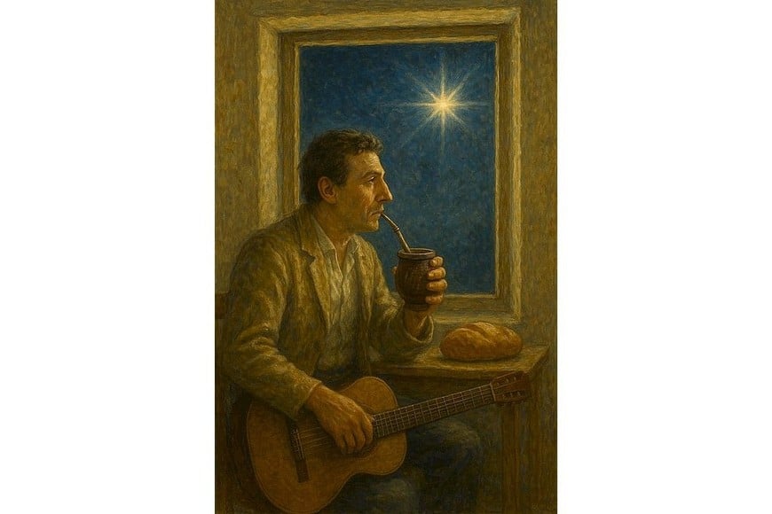 "Estoy en Pampa y la vía como viola en el empeño/ refundao en mi tristeza porque tengo corazón/ pifiando siempre la suerte, errando como un maleta/ como perro en cancha e bocha, la gente me hace gambeta/ porque soy pa´ todo el mundo uno más entre el montón"