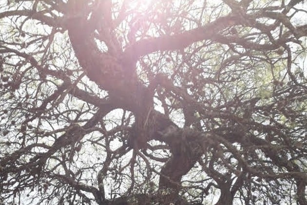 Ese inmenso árbol es un paisaje en sí mismo. Las ramas más altas parecen acariciar el cielo, mientras que muchas de las más bajas forman cavernas sombrías. Una tormenta desgajó un gran trozo, que quedó apoyado en la tierra. Fiel a su destino de seguir tratando de ser inmortal, esa rama echó raíces largas, profundas y fuertes, y hoy hace las veces de columna tutelar del resto del árbol. Se le calcula unos 1.200 años de edad y al estar frente a él, surge la tentación de decirle: