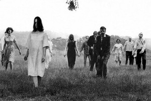 En "La noche de los muertos vivientes" (obra pionera de George Romero de 1968), un grupo heterogéneo de personas intenta sobrevivir en el interior de una granja aislada después de que los cadáveres (por una causa desconocida) vuelven a la vida y comienzan una cacería humana. Sobre esta obra, leemos en el libro "Filosofía zombi" de Jorge Fernández Gonzalo: "El zombi representa esa fuerza de lo ignoto (…) Romero nos presenta el terror de lo indecible, la masa persistente y enloquecida. El zombi no tiene ni razón de ser, ni discurso, ni tan siquiera recibe el privilegio de la denominación. De hecho, a lo largo del metraje no se utiliza ni una sola vez la palabra zombi, por lo que hay que advertir necesariamente la importancia del bautismo popular que quiso hacer coincidir a estos peculiares caníbales con los autómatas clásicos del cine. Los famosos zombis de Romero no eran tales, sino una masa de hombres alienados, probablemente renacidos de la muerte o atravesados por una oscura maldición espacial, con un apetito monstruoso por la carne y desprovistos de su capacidad de raciocinio." En estos seres, algunos críticos creen ver una fuerte crítica a la guerra de Vietnam: allí deambulan los estadounidenses desengañados y derrotados en el frente de batalla; que vuelven a su patria destrozados por las balas soviéticas y el napalm; que yerran atontados y exigen explicaciones a la maquinaria capitalista que los manda "al muere" so pretexto de llevar la libertad y la democracia a los países oprimidos por el fantasma comunista.