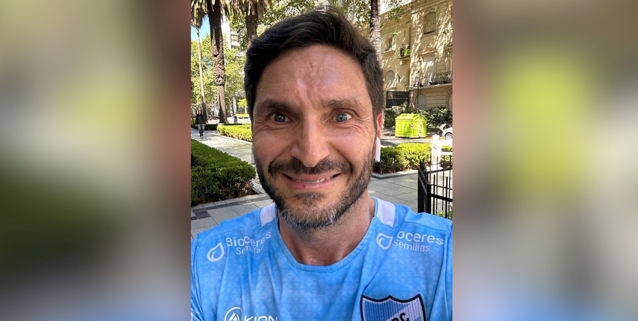 Pasión por el "Celeste". El gobernador Pullaro en una de sus tantas salidas a entrenar los fines de semana en Rosario, con la camiseta del club de sus amores / crédito internet